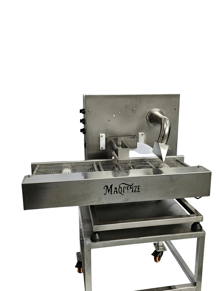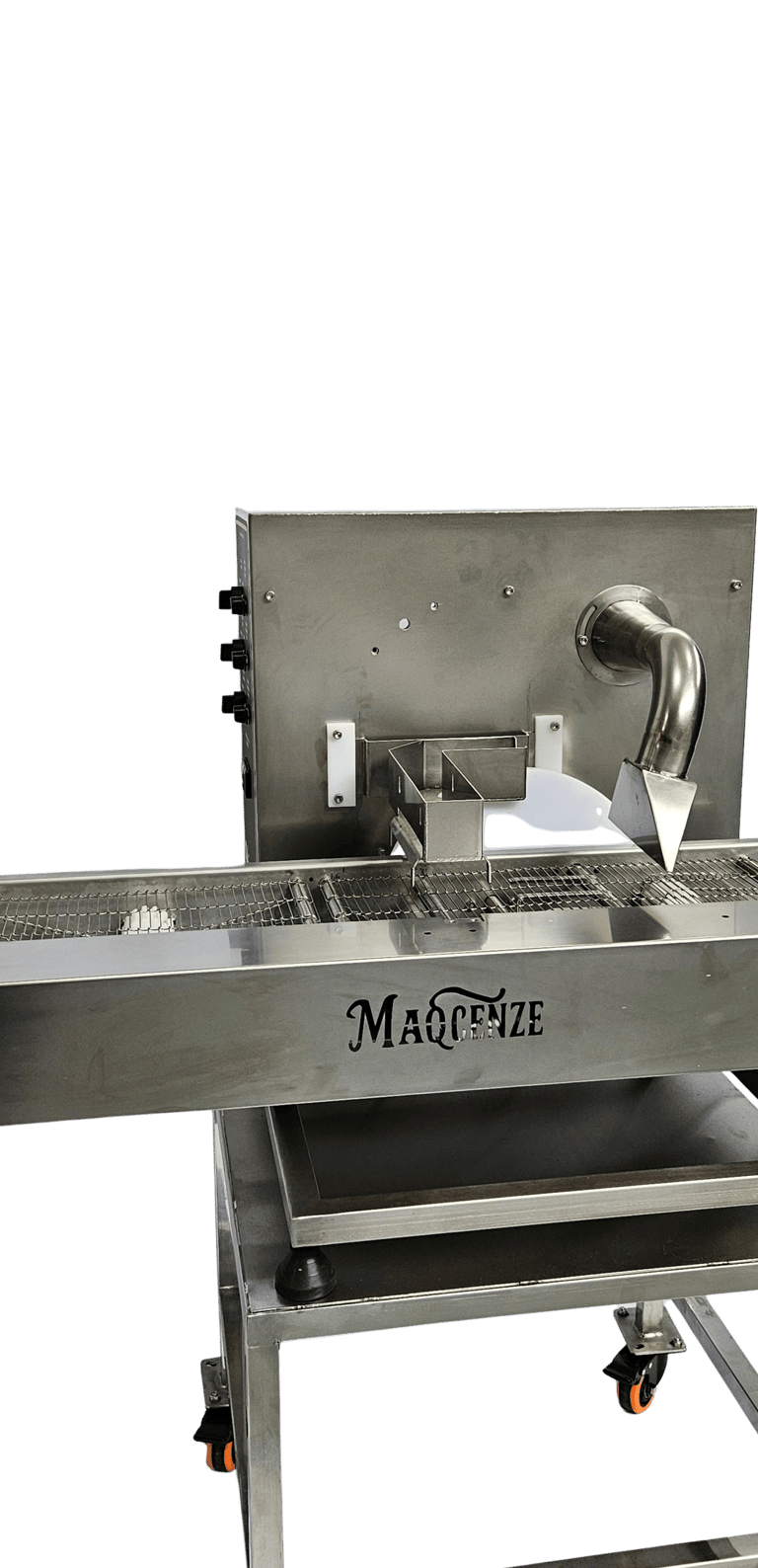 Feita em aço inox 304, a cobrideira de chocolate é a máquina ideal para quem busca cobertura uniforme e padronizada, garantindo a espessura ideal da casca em cada produto. Ela aplica o chocolate de forma homogênea enquanto os itens avançam pela esteira, otimizando custos e elevando a qualidade final das suas produções.